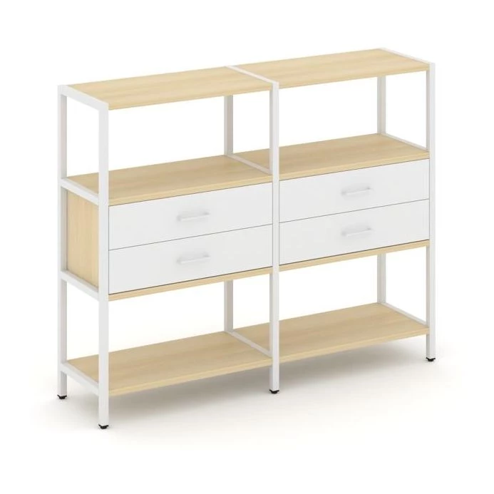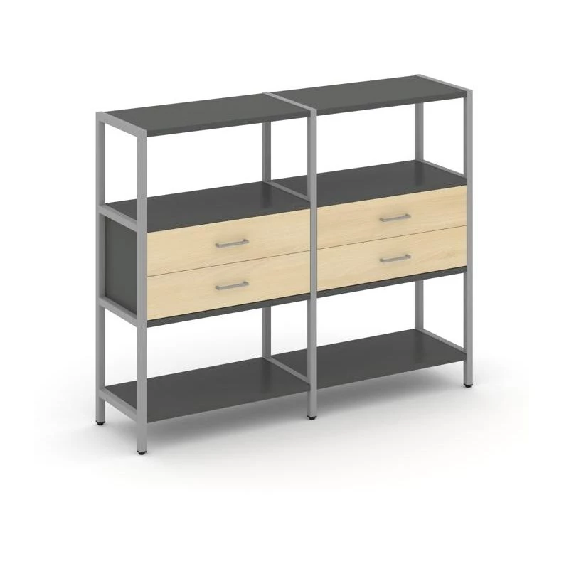 - Двухсекционный стеллаж трехярусный с ящиками на одном ярусе 1590х400х1246 Шелф Систем / Shelf System