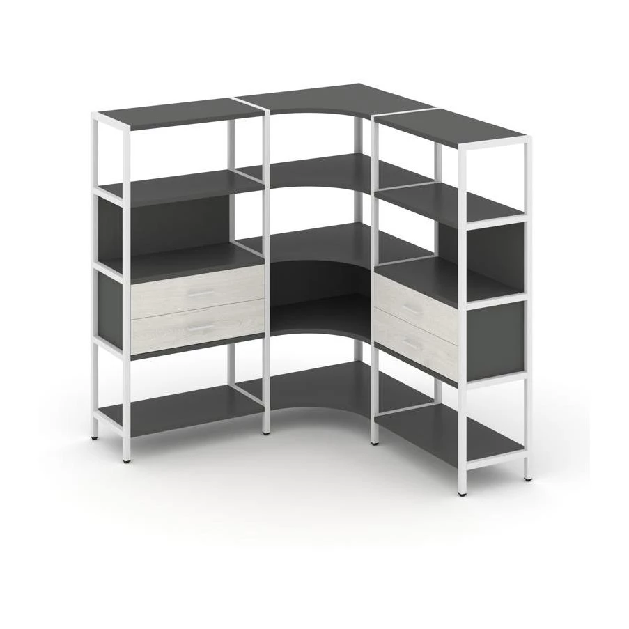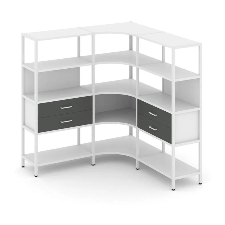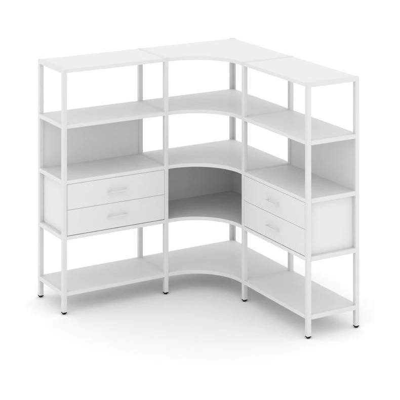 - Трехсекционный угловой стеллаж четырехярусный с ящиками 1590х1590х1613 Шелф Систем / Shelf System